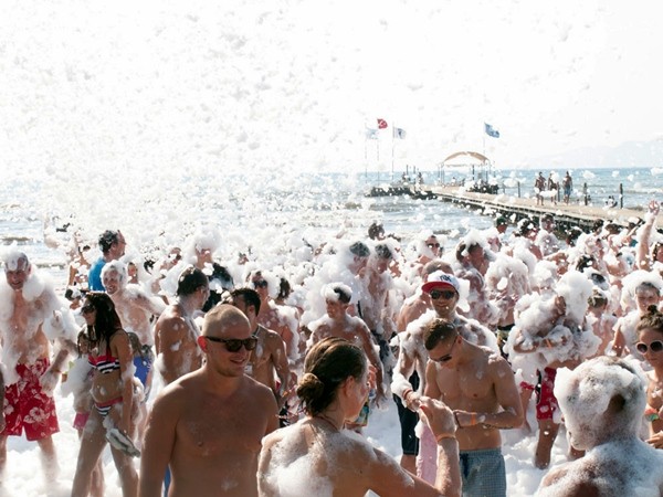 Plajda önce çeşitli yarışmalar yapıldı ardından da köpük dansı yapıldı.