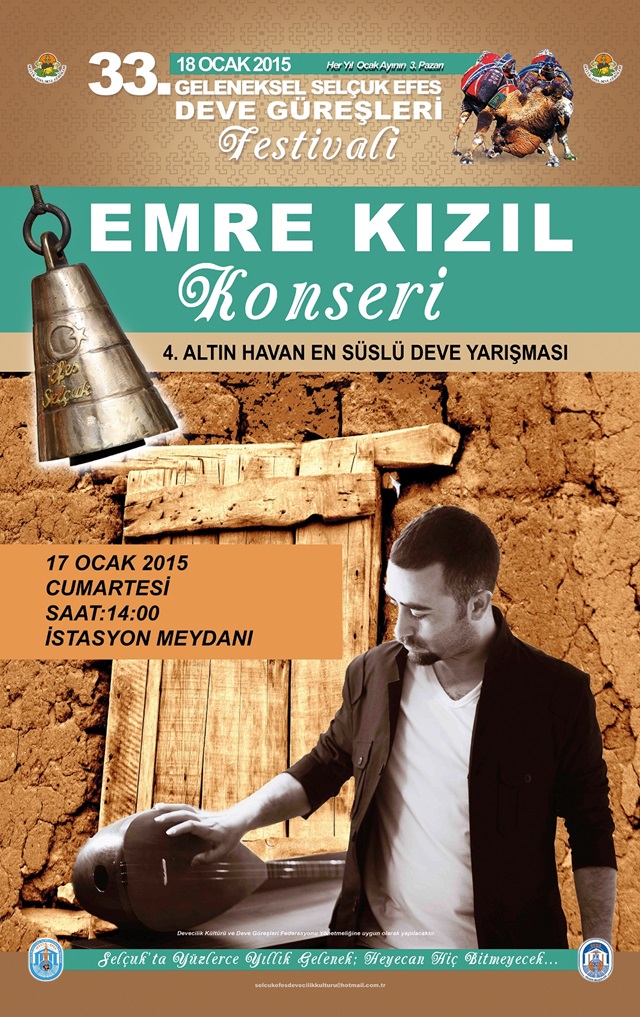 Yarışmanın ardından muhteşem bir konserle sahne alacak olan genç sanatçı Emre Kızıl, birbirinden güzel türkülerini güreş severler ve Selçuk halkı ve katılan davetliler için söyleyecek. Bu yılki güreşlere dev bir organizasyonla hazırlandıklarını belirten Selçuk Efes Devecilik Kültürü ve Deve Güreşleri Derneği Başkanı Mustafa Yavuz, tüm güreş severleri Deve Güreşlerinin Kırkpınarı olarak bilinen 33.Selçuk Efes Deve Güreşi Festivaline davet etti.