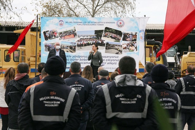 Efes Selçuk Belediyesi ile Belediye – İş Sendikası İzmir Çevre Belediyeler Şubesi arasında toplu iş sözleşmesi imzalandı. İmzalanan sözleşmeye göre KHK ile belediye şirketi çalışanı olan personelin maaşına ortalama ikramiyelerle birlikte %50 ye yakın zam yapıldı. Yapılan düzenleme ile en düşük personel maaşı tam mesai ve ikramiye ortalamaları ile birlikte 4000 TL’nin üzerine çıktı.
