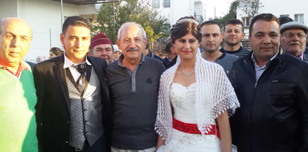 Hafta başında bayram tatili için İzmir’in Seferihisar İlçesi’nde olduğu öğrenilen CHP Genel Başkanı Kemal Kılıçdaroğlu, akşam saatlerinde Muğla’nın Bodrum İlçesi’ne bağlı Mumcular Beldesi’nde ortaya çıktı. Kılıçdaroğlu yanında İstanbul Milletvekili Aydın Ayaydın ve Mumcular Belediye Başkanı MHP’Li Birol Aydın ile birlikte önce köy kahvehanesinde vatandaşlarla sohbet etti. Kılıçdaroğlu daha sonra Bodrum Belediyesi Arıtma Tesisinde işçi olarak çalışan 29 yaşındaki Engin Erol ile Hatice Erol’un (20) Gökyeri Mahallesi’ndeki düğününe katıldı. Kılıçdaroğlu düğünde geline ve damada altın takıp ömür boyu mutluluklar diledi. Vatandaşların hatıra fotoğrafı çektirme isteğini geri çevirmeyen Kılıçdaroğlu bol bol fotoğraf çektirdi.