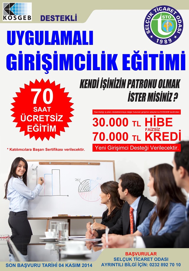 İlgilenen girişimci adaylarının 4 Kasım 2014 Salı gününe kadar Selçuk Ticaret Odasına başvurmaları gerekiyor. 5 -13 Kasım tarihleri arasında düzenlenen eğitim programından 30 kişinin yararlanması hedefleniyor.