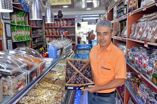 Ramazan ayının başlamasıyla birlikte hurma satışları tavan yaptı. İşletmeciler, Ramazan ayının gelmesinden memnun. Satışlar iyi, yüzler gülüyor.