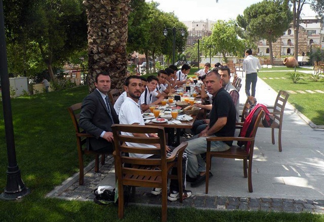 Selçuk Efes Spor U-14 sporcu ve teknik heyetine Muğla’ya hareketinden önce Selçuk Belediyesi tarafından Ayasuluk Kafe de kahvaltı ikram edildi.