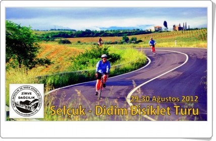 Zirve Dağcılık ve Doğa Sporları Kulübü Selçuk Şubesi Bisiklet Takımının 29-30 Ağustos 2012 tarihlerinde gerçekleştireceği Selçuk ve Didim arasındaki bisiklet turuna katılmak isteyenler sabah saat 05.00’da Bizim Börekçi’de toplanacak ve kahvaltı sonrasında Didim’e doğru yola çıkacaklar. Didim’deki Tavşanburnu kamp alanında bire gece konaklayıp denizin keyfini çıkardıktan sonra ertesi gün dönüşe geçecek olan bisikletçiler turu Selçuk ilçesinde sonlandıracaklar. Zirve Selçuk Bisiklet Takımı sorumlusu Adnan Barım ve Sevgi Dökmetepelioğlu’nun rehberliğinde gerçekleşecek faaliyete katılanlar gerçekleşecek tur vesilesi ile yeni dostlar edinirken coğrafyamızı da keşfetme olanağı bulacaklar. Selçuk, Ortaklar, Söke, Didim rotasında toplam 93 km. pedal çevirecek olan bisikletçilerin maceralı yolculuğuna katılmak isteyenler aşağıdaki iletişim bilgilerini kullanarak rehberlere kayıt yaptırabilecekler.